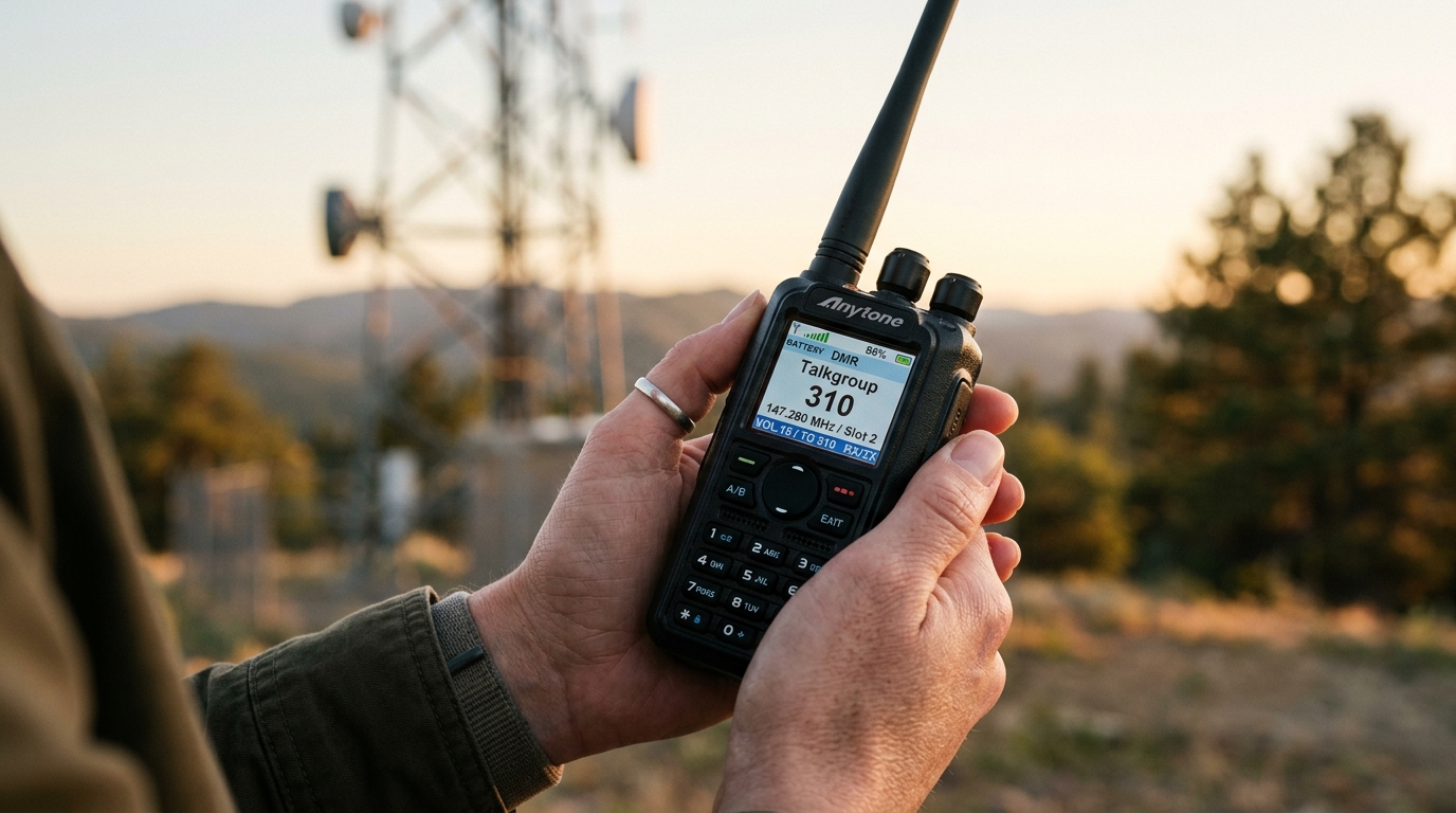 A DMR-capable radio. Not every ham radio does DMR. You need one with a DMR chipset. The AnyTone AT-D878UVII Plus is the most popular DMR handheld in amateur radio right now. Good screen, solid receiver, well-supported by the community. The Radioddity GD-77 is the budget option and runs open-source firmware (OpenGD77) that many operators prefer over the stock firmware.